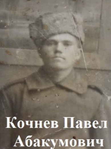 Кочнев Павел Абакумович мой прадедушка погиб от ран в госпитале в 1942г, дома у него остались жена Настасья и дети Валентин, Николай, Нина.