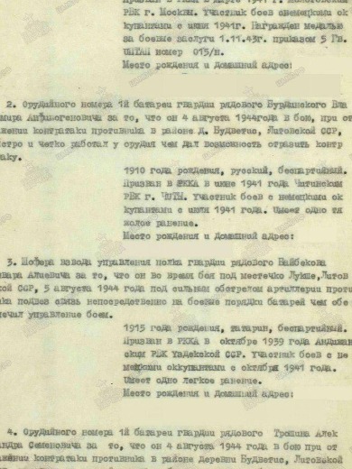 Мой дед Бурдинский Владимир Анфиногенович, родился 26.07.1910 г. на ст. Завитая, Шилкинского района Читинской области. Был призван на фронт Читинским РВК в июне 1941.Осталась жена и сын, мой отец. Войну закончил в 1944 году, под Кениксбергом. Был тяжело ранен в голову и долго лечился в госпиталях. Из рассказов помню,говорил, что в начале войны была 1 винтовка на несколько человек! Дед был артиллеристом и был награжден командованием Белорусского фронта в июле 1944 года медалью "За боевые заслуги", за подвиг, который он совершил 4 июля 1944г. Также имеет орден Отечественной войны 1 степени. Воинское звание - сержант. Воинская специальность - орудийный номер 1 батареи. Любимая песня была "Враги сожгли родную хату." Пели с дедом эту песню каждый раз, когда я оставалась у него гостить.Я пела и мне было очень жалко этого солдата, потому что представляла дедушку.Не стало деда 8 января 1993 года