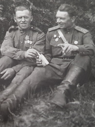 К сожалению, архивы моей бабушки не сохранилис. Мы знаем, что на начало войны дедушка работал на воронежской электростанции. После эвакуации семьи (жена, две дочери), забрали на фронт. Мы знаем, что он два раза был ранен, контужен, проходил лечение в саратовском госпитале. Потом опять был на фронте в действующей армии до конца войны. После войны находился в г. Инстинбург (Черниховск) до 1946 г. в интендантской службе. Демобилизовался в г. Саратов (Воронеж был разбомблен, имущество не сохранилось), где прожил до конца своей жизни.
