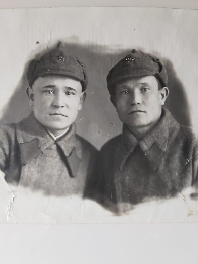 принимал участие битве за сталинград, награжден орденом красной звезды, на втором фото в свердловске встретил родного младшего брата Мухамеда в перессылке частей, в память была сделано фото, далее пути разошлись и по разным линиям фронта.