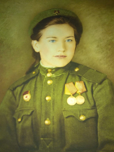 Начала войну в разведке на территории восточной Украины, с 1942 года санинструктор в действующей армии до мая 1945 года. Участвовала в битвах за Сталинград, на Курской дуге, во взятии Кенигсберга, в освобождении Украины, Белоруссии, Восточной Пруссии, Польши, Восточной Германии. Войну закончила в Чехословакии. Награждена многочисленными орденами и медалями, среди которых: Отечественной Войны, Красной звезды, За боевые заслуги и другие.