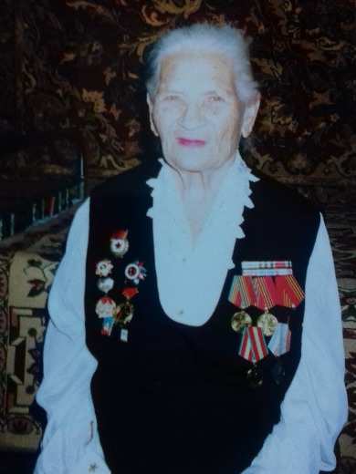 Служила поваром. Дошла от Сталинграда до Германии. Имеет шесть благодарностей от Сталина. Награждена медалями и Орденом Великой Отечественной Войны 2 степени.