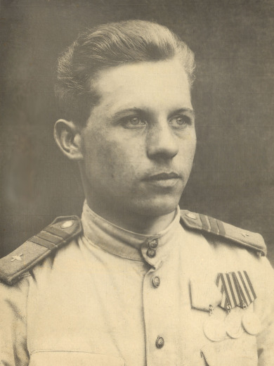 Участвовал в Великой Отечественной войне в составе:290 отд. батальон связи командир отделения связи, 332 штурмовой авиационный дивизион-диспетчер с августа 1942г. по 9 мая 1945г. Получил правительственные награды: Медаль «За боевые заслуги» 2289075 - 1 мая1945г. «За оборону Сталинграда» уд.76836 22 июля 1946г. «За взятие Кенигсберга» - 20 мая 1946г. «За Победу над Германией» - 8 января 1946г.