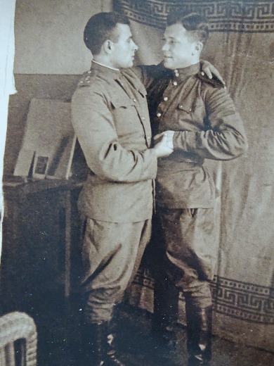 Попов Константин Никитович встретил Великую Отечественную войну киномехаником в г.Белосток (Польша) - во время показа фильма, кинопередвижка была обстреляна немецким пулеметчиком. Выжив под обстрелом, Константину Никитичу удалось бежать в город Несвиж (Белоруссия), где он летом 1941 скрывался от немцев в одной из деревень. Вскоре в деревню вошла айнзатцгруппа, и Константин Никитич решает предпринять попытку прорыва к своим. Деревню каратели сожгли и организовали погоню за сбежавшими. Константин Никитич был пленен и продан в рабство в Чехию, где работал за еду на ферме. В 1943-44 немцы перевели Константина Никитича в концентрационный лагерь Stalag 318, он же VIII-F. В Лагере Константин Никитович пробыл не долго - узнав, что Наши уже освободили Польшу и Сейчас стремительно двигаются вперед, он с группой товарищей решает бежать. Пересечь территорию лагеря беглецам помогает один из немецких офицеров, тем не менее, из лагеря скоро была организована погоня. Бежавшим удалось достичь линии брошенных немецких укреплений и укрыться там в блиндажах. Немцы настигли бывших пленников и начали поочередно врываться в блиндажи, расстреливая всех находившихся внутри. В это же время подошла линия фронта, наши шли в наступление и советская артиллерия открыла огонь по блиндажам и немцам. Константина Никитича спасло чудо - советский снаряд не долетел до блиндажа, где он прятался, а немцы просто не успели к нему подойти и обернулись в бегство. После тщательной проверки СМЕРШем, рядовой Попов был зачислен в ряды Красной Армии на сверхсрочную службу. В составе 1-го или 2-го Белорусского фронтов Константин Никитич брал Берлин. В Берлине 45-го Константин Никитич встретил своего родного брата Валентина. В 1946 был демобилизован в город Темплин. Эта история была собрана из кусочков очень редких рассказов Константина Никитича о Войне. Хотя внуки и правнуки много раз виделись с прадедом и часто общались с ним, он наотрез отказывался рассказывать о войне. Дед Костя был очень веселым человеком и охотно пересказывал лишь фронтовые шутки и смешные истории, которые приключались с ним на службе.