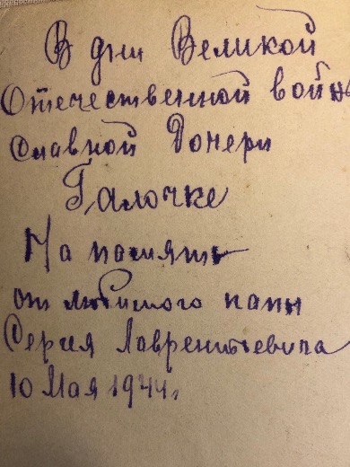 Это отец моей мамы. Ей он подписал свою фотографию за год до Великой Победы. Из наградного листка: «Старшина Михайлов С.Л. участвовал в боях по защите независимости нашего государства во время гражданской войны в боях против Петлюры, получил два ранения. В 140 АЗСП служил в должности старшины пулеметной роты.» Воевал в Белоруссии, Прибалтике, дошел до Бухареста. Награжден Орденом Красной Звезды, медалью «За отвагу».