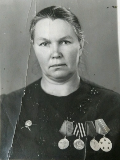 Добровольно ушла на фронт, до этого заведовала избой-читальней в х. Революционном. В армий овладела специальностью радистки. Вначале служила при штабе 63-й армии в составе подо Ржевом, участница курской битвы. В составе 323-й Брянской ордена Суворова стрелковой дивизии освобождала от немецко-фашистских захватчиков русскую землю. Затем - знаменитая встреча на Эльбе. День победы встретила в Подсдаме.Награждена:орденами \"Красной Звезды\"и \"Отечественной войны 2-й степени;медалями \"За боевые заслуги\" и \"За победу над Германией\".