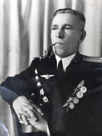 1934 закончил Иркутскую Военную Школу Авиационных Техников. 1936 год закончил Ейскую школу морских летчиков им. Сталина. Получил направление в Ораниенбаум. 1937 зам начальника штаба по разведке 12-ой отд. авиа эскадрильи. Деревня Хабалово. 1938 начальник штаба эскадрильи. 1939 часть передислоцировалась на аэродром Кихелконна. Эстония. 1940 офицерские курсы разведки и ПВО ВМБ флота 1941 -часть находилась на 5-им аэродромах: Горывалдай, Борки- Ораниенбаум, 12.12. 1942 начальник разведки 73-го Авиа полка Пикирующих бомбардировщиков. Обеспечивали условия снятия блокады. Октябрь 1944 перебазировались в Паневежис Ноябрь 1944 -Мемель Апрель, май 1945 -Прекульс Июнь 1945 - Пярну Май 1946 - Кенигсберг, Нойкурен ( Пионерск) Окончил службу 1950 -Лиепая За время военной службы награжден двумя Орденами Отечественной войны II степени, Орденом Отечественной войны I степени, Орденом Красной Звезды и Орденом Красного Знамени. Награжден медалями: «За победу над Германией в Великой Отечественной войне 19411945 гг.»,«За оборону Ленинграда», «За взятие Кенигсберга», «За боевые заслуги».