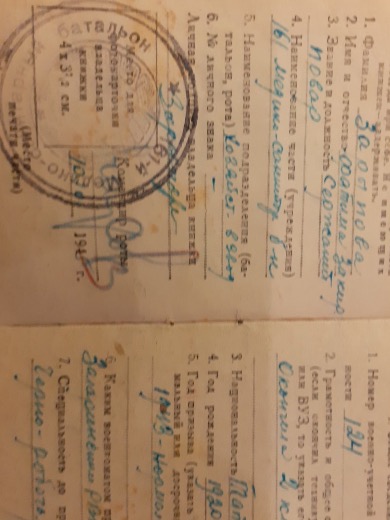 Годы службы 22.01.1943-09.08.1945 22.01.1943 г окончила курсы поваров 23.02.1943 приняла присягу В сентябре 1945 г демобилизована. С 09 августа 1945 по 03 сентября 1945 участвовала в боях с японскими империалистами.