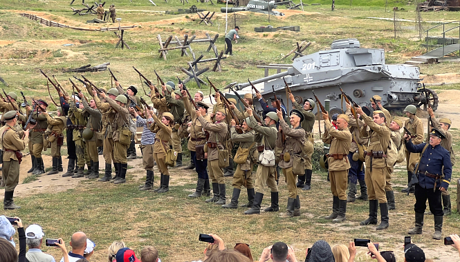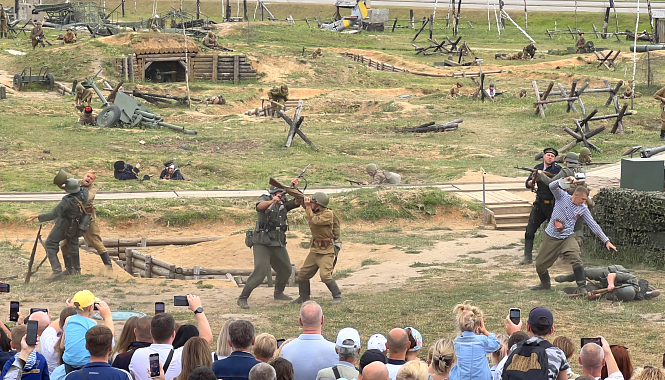 Пиротехнические спецэффекты, исторические костюмы и декорации, позволили гостям совершить путешествие в прошлое, погрузиться в реальность того исторического периода и вспомнить о подвигах наших предков, о том какой ценой они победили фашизм.