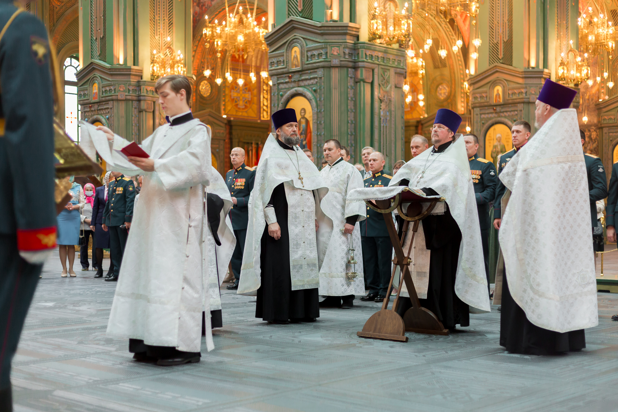 На богослужении присутствовали заместитель Министра бороны Российской Федерации – начальник Главного военно-политического управления Вооруженных Сил РФ генерал-полковник Андрей Картаполов, начальник войск РХБ защиты ВС РФ генерал-лейтенант Игорь Кириллов ветераны и личный состав войск РХБ защиты.
